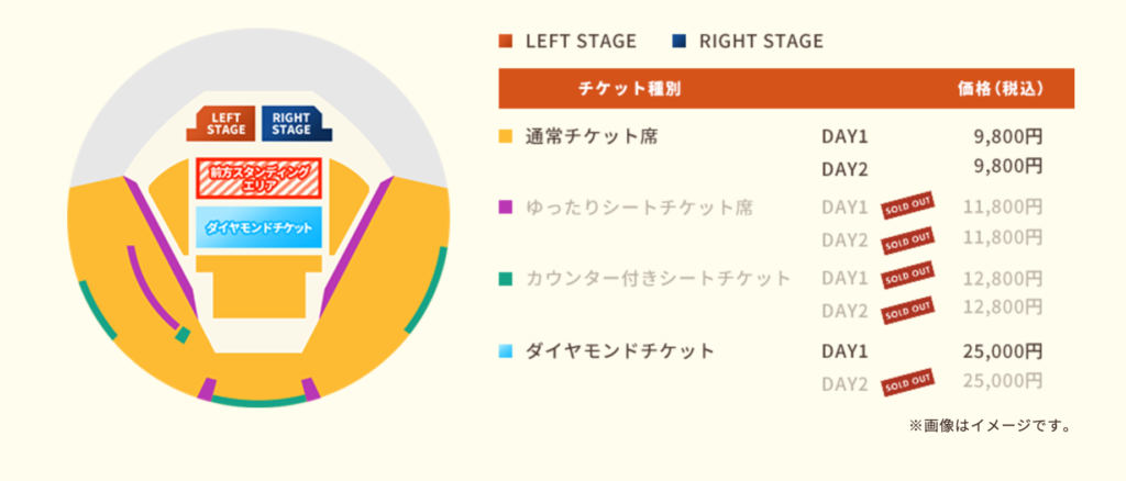・PLATINUMチケットを購入のお客様はGAエリアの入場も可能です